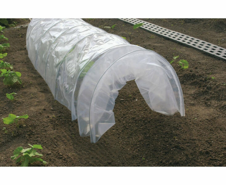 Leszúrható, mobil fóliaalagút, mely könnyen telepíthető és a szellőztetést is lehetővé teszi. Easy Tunnel Mobil fóliaalagút gyümölcsökhöz és zöldségekhez A Nortene Easy Tunnel termék egy mobil fóliaalagút, amely harmonikaszerű kivitelezésének köszönhetően maximum 3 méter hosszúságig nyújtható, de kisebb méretben is telepíthető. Leszúrható, ezáltal gyorsan elhelyezhető és igény szerint át is helyezhető. A harmonika-alagút a szezon elején (február, március, április, május) és télen (szeptember, október, november) is könnyedén felállítható. Összehajtva is eltárolható a következő szezonig. Easy Tunnel Mobil fóliasátor kompletten A csomagban átlátszó, LDPE kis sűrűségű polietilénből készült fóliát találhatunk (vastagsága 120 μ), mely segítségével legfeljebb 60 cm széles, 45 cm magas és 300 cm hosszú sátor alakítható ki. A fólia tartását 7 darab horganyzott acél borda biztosítja, mely tartozék. A fólia ellenáll az UV sugárzásnak, akár több évig is használható. Anyaga: átlátszó, kis sűrűségű PE (polietilén), ellenáll az UV sugárzásnak. Vastagsága: 120 μ Méretek: 0,6 x 0,45 x 3 m